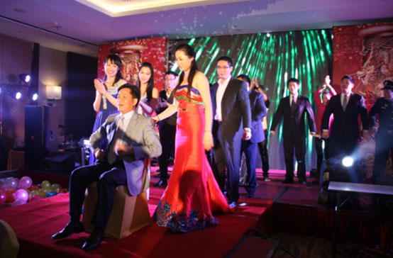 精妙絕倫的中華國粹川劇《變臉》為整臺晚會拉開了序幕,變臉是運用在川劇藝術中塑造人物的一種特技,是揭示人物內心思想感情的一種浪漫的手法,而我們郭氏勇于挑戰市場的“變臉”。這幾年在國家的嚴厲調控下,郭氏懂得抓住機遇、勇于迎接挑戰,完成了華麗的轉型,取得了輝煌戰果。堅定信念的郭氏,文化凝結的郭氏,已經有能力笑迎市場的“變臉”;同時,其中穿插的噴火表演,也寓意著郭氏在新的一年里,必能紅紅火火、再創佳績。晚會接下來的節目更是精彩紛呈,溫馨感人的光影文藝表演《郭氏的故事》、美麗動人令人回味的《采茶舞》、幽默逗趣的三句半《永泰賀春》、融合郭氏特色的大型主題走秀《我為自己代言》、繪就酒店員工心聲的話劇《知足》……一個個精彩的節目不僅贏得了臺下一陣陣的掌聲和歡呼聲,也贏得了在場所有同仁的心!讓我們充分感覺到身邊的每一位同事都可能是深藏不露的高人,任何一個節目都能讓大家為其歡呼、為其喝彩!