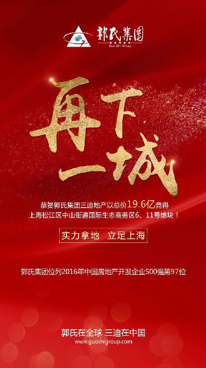 [摘要]:2016年8月26日,三迪地產擊敗20余家知名企業,成功競得上海市松江新城區EBD商務區N6、N11號地塊。該地塊土地面積73506.7平方米,成交價19.6億元,溢價率183%。