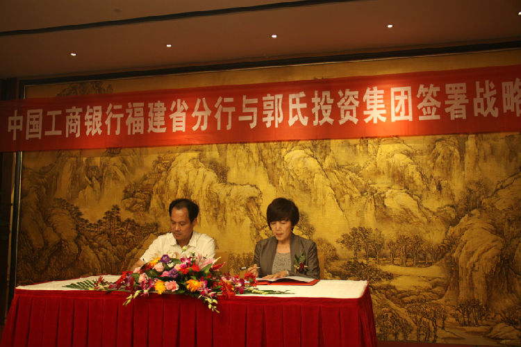 7月12日,郭氏投資集團有限公司與中國工商銀行福建省分行在福州簽署《戰略合作協議》。中國工商銀行福建省分行行長朱春華、郭氏投資集團有限公司董事長郭加迪等出席簽約儀式,郭氏投資集團有限公司副總裁王衛兵、中國工商銀行福建省分行副行長陳建興分別代表雙方在戰略合作協議上簽字。