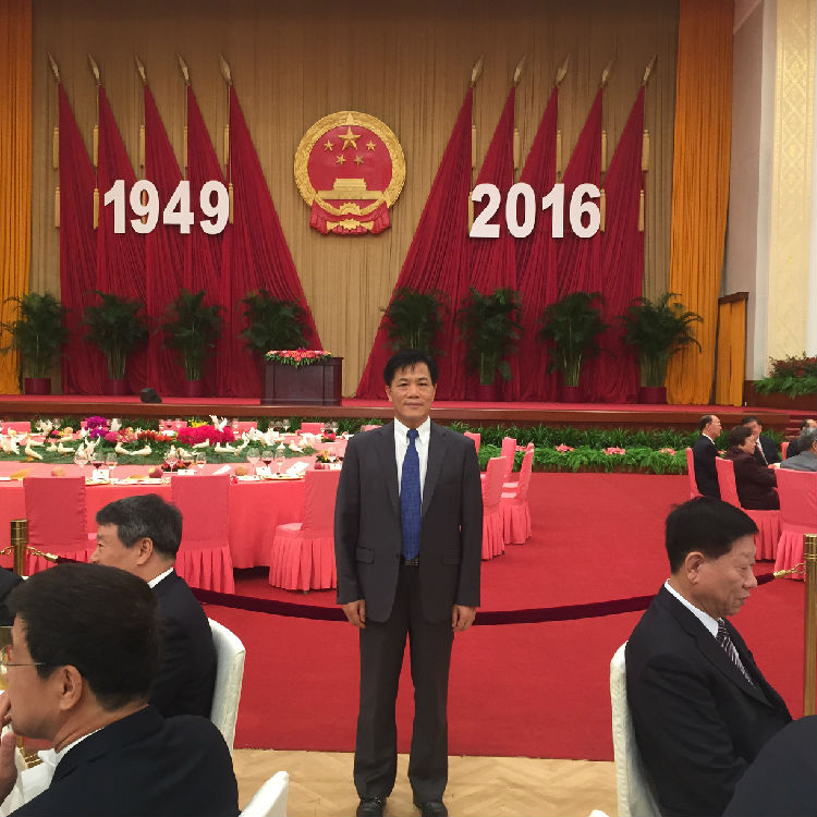 人民大會堂宴會廳燈光璀璨,賓朋歡聚一堂,洋溢著喜慶祥和的氣氛。主席臺上方高懸著莊嚴的國徽,“1949—2016”的大字年號在鮮艷的五星紅旗映襯下熠熠生輝。