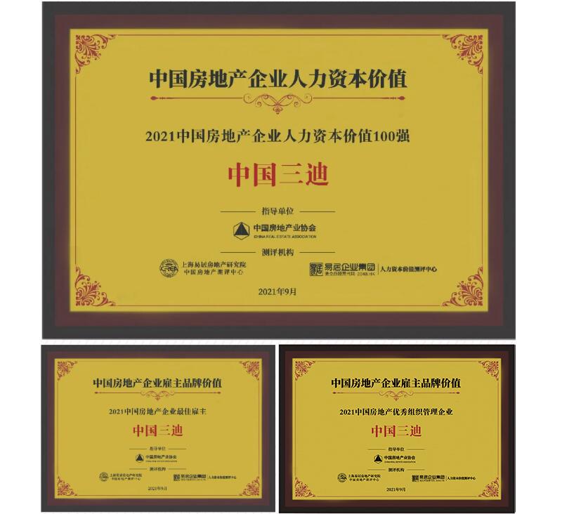 9月23日,2021中國房地產業價值峰會在成都召開,中國三迪憑借強勁的品牌競爭力和經營實力,得益于優秀的組織效能管理、企業文化建設的突出表現,榮獲2021中國房地產企業人力資本價值100強第77位、2021中國房地產企業最佳雇主,2021中國房地產優秀組織管理企業獎等3項大獎,這是繼榮獲2021年度人力資源管理杰出獎之后,行業地位再獲認可,彰顯了業界對中國三迪在企業治理方面的肯定。