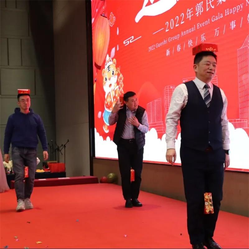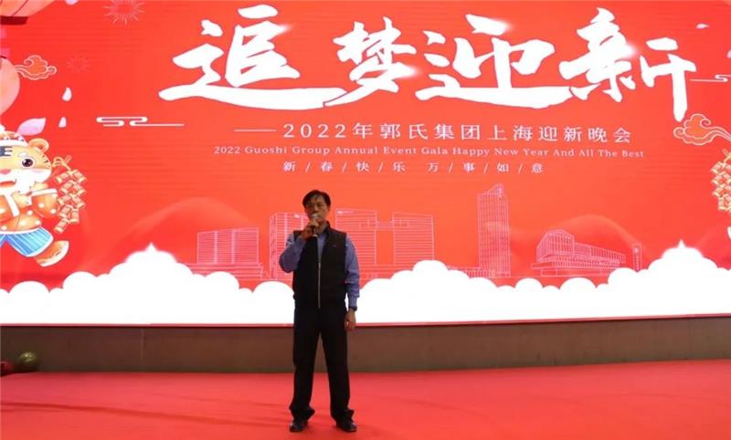 晚會現場,郭氏集團董事長郭加迪新春致辭,他表達了對全體郭氏人新春的問候,表達了對郭氏集團以及全體員工的期待和祝福,他特別對疫情之下仍奮戰在一線的郭氏人表示關心和祝福,表示待春節后疫情穩定時,將對優秀員工和優秀團隊進行頒獎表彰,希望全體郭氏人在新的一年里虎力十足,追夢迎新,來年迎接更好成績。