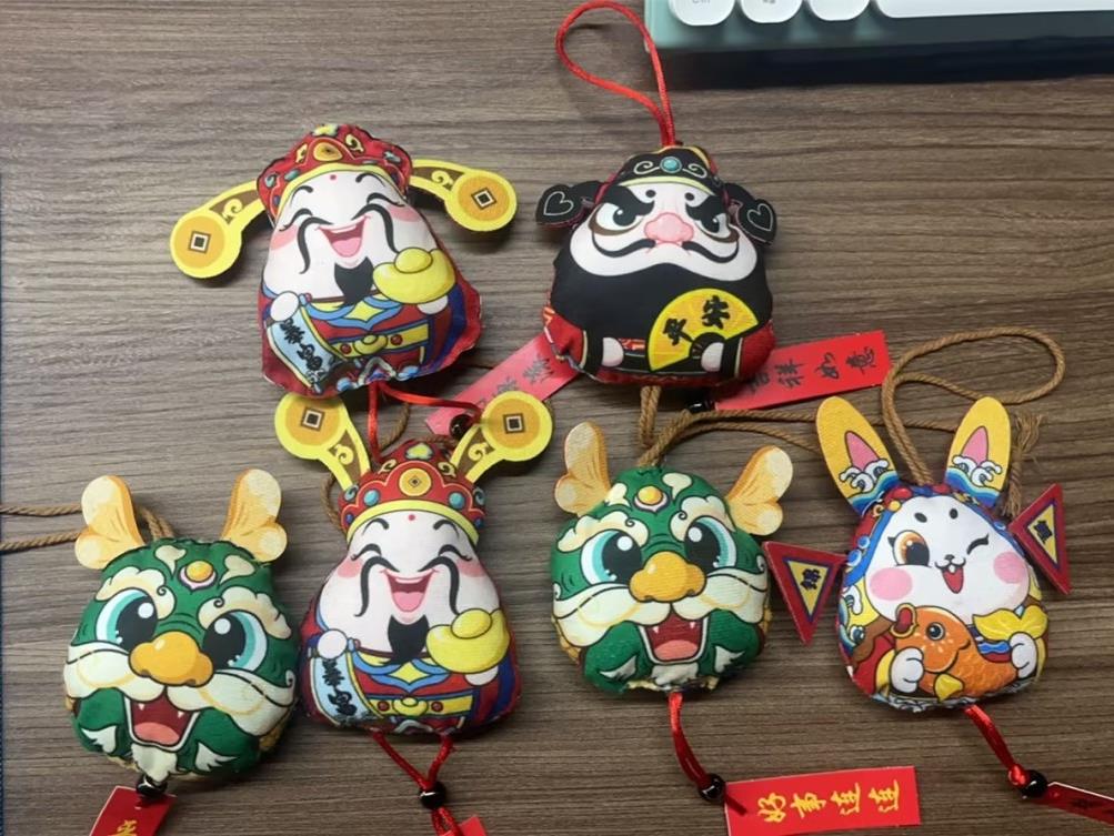 隨后,大家各自挑選款式不一、各具特色的艾草物料包分別扎捆成束,掛上帶有“平安”、“納福”、“開運”、“財源滾滾”、“好事連連”、“吉祥如意”等字樣的香囊、祝福卡片和祝福彩帶。伴隨著歡聲笑語,一個個別具特色、香氣撲鼻的艾草掛飾制作完成。寓意祈福、幸福、美好的艾草掛飾承載著中華傳統節日的濃厚文化底蘊,為端午佳節增添了濃濃的“艾”意。