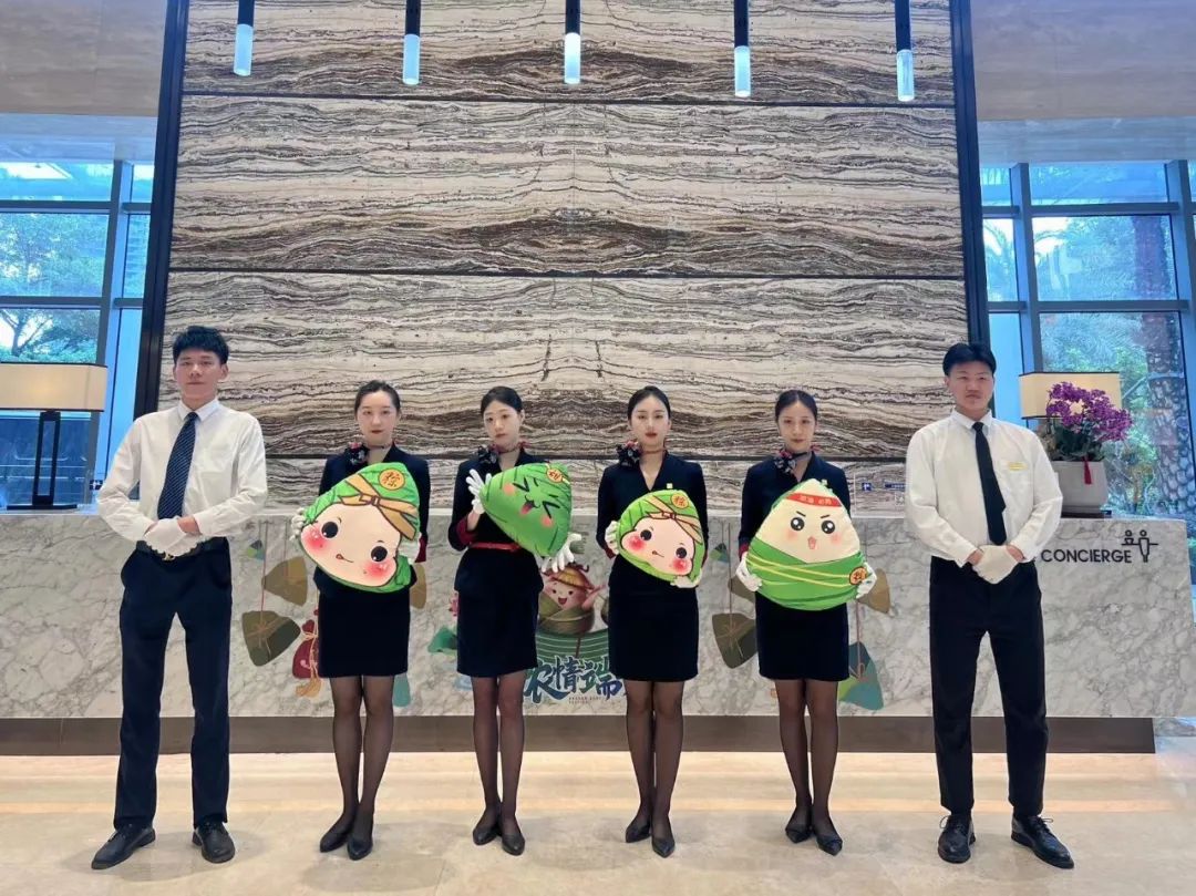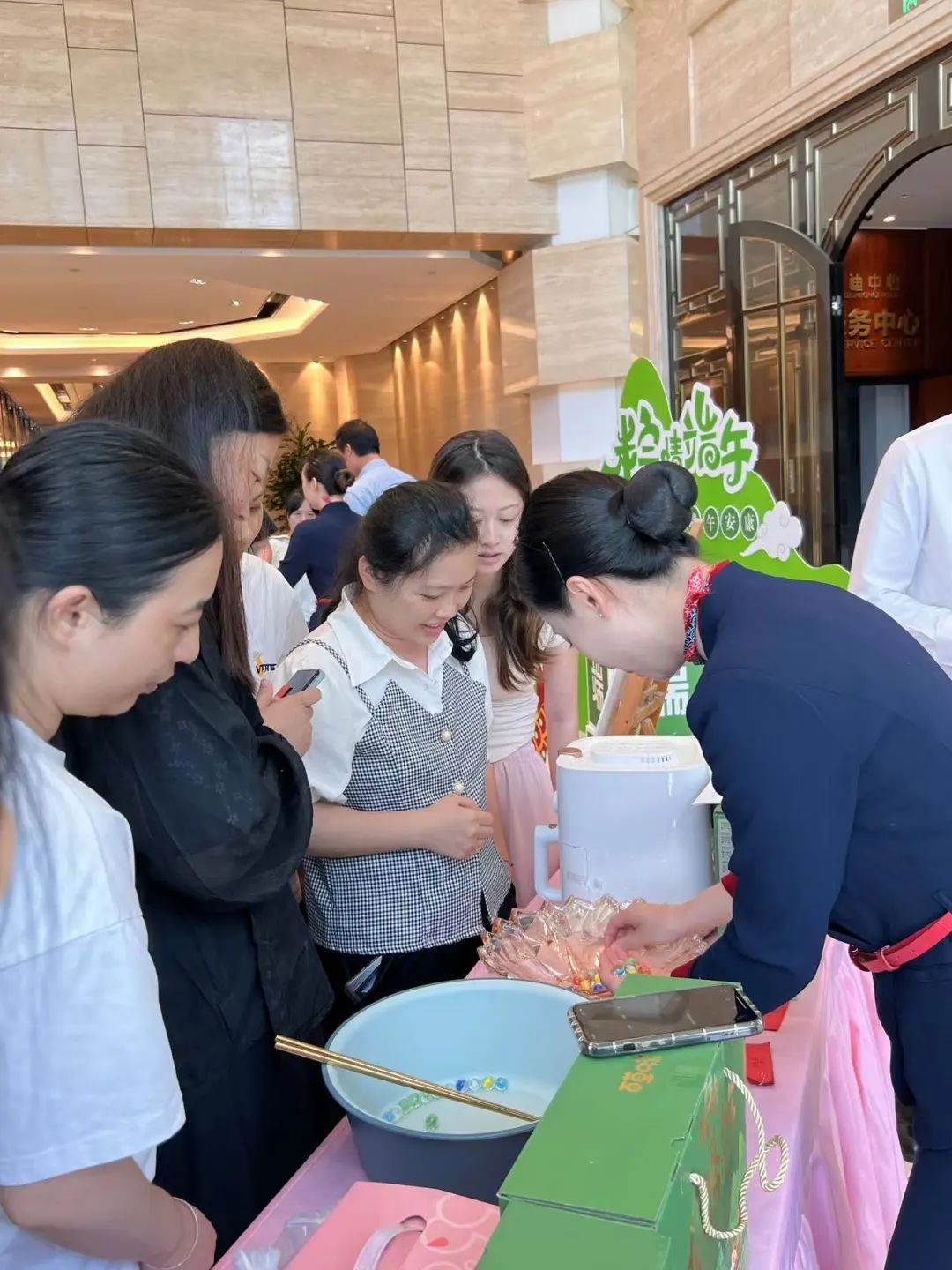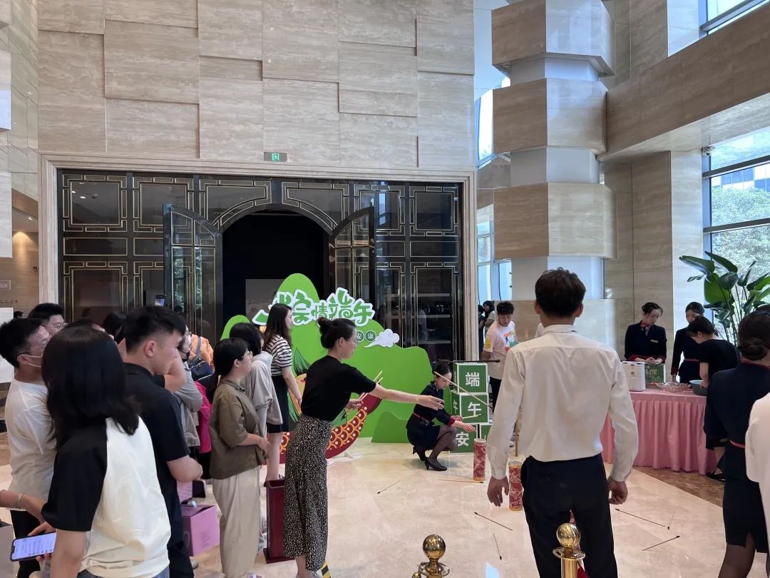 在持續三天的小長假中,酒店前場還組織了達人手工課 “慶端午包粽子” 的活動。片片棕香,屢屢恩情得以施展,客人在廚師的帶領下一同學習如何包粽子,并親手制作粽子。這樣的活動不僅增加了員工和客人之間的互動,還增進彼此之間的了解和交流。