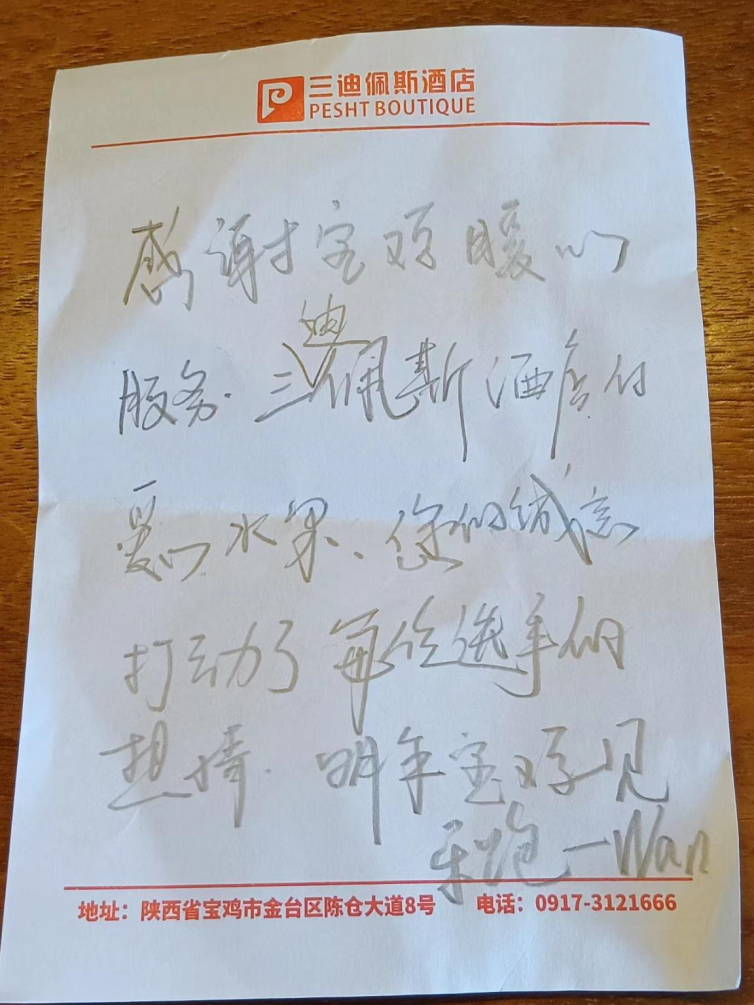 三迪佩斯酒店市場銷售部經理韓海明接受寶雞新聞網采訪說:“酒店為這次賽事準備了160套房間,并在每個房間內放置果盤、賽事路線圖、天氣提醒等,為每一位運動員和工作人員提供貼心的服務。此外,我們還根據賽事情況,為大家提供延時退房服務。”