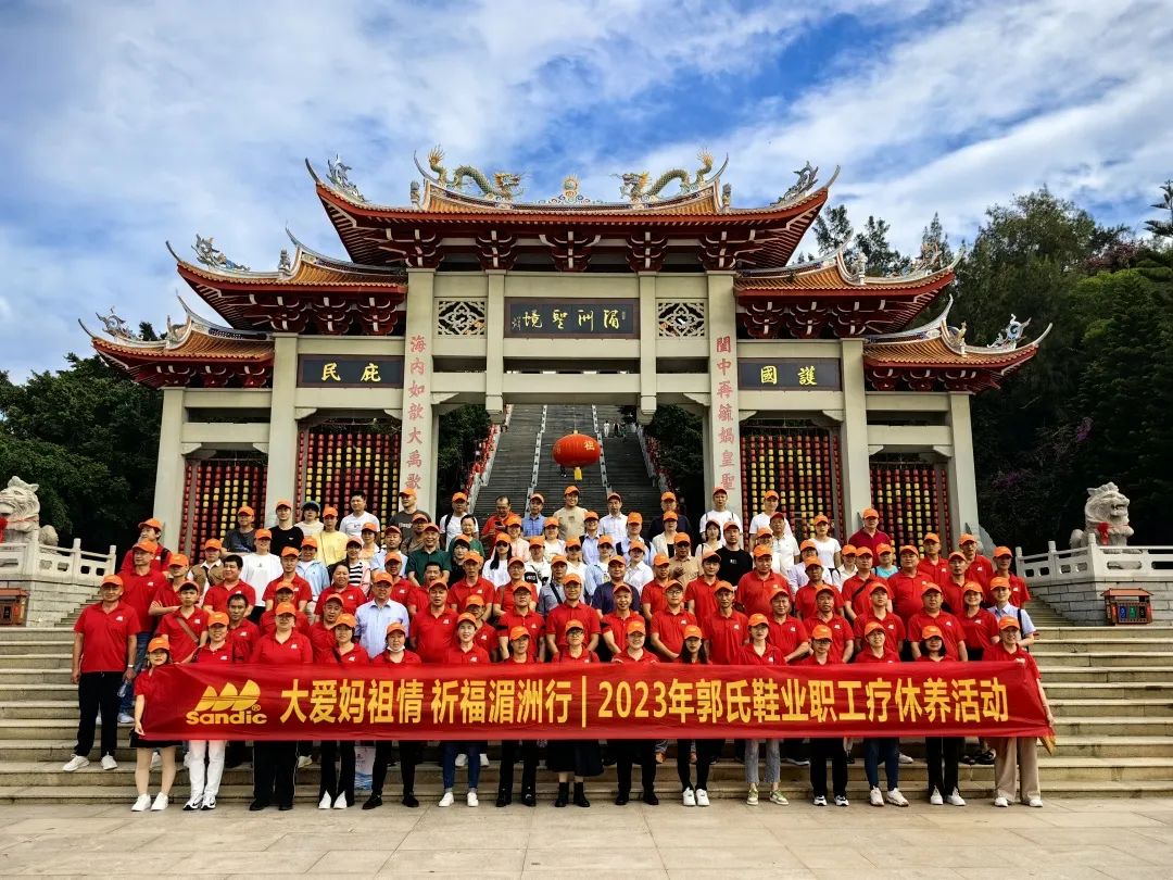 秋意款款,關愛暖暖!為大力弘揚郭氏集團的勞模精神、勞動精神、工匠精神和奉獻精神,進一步增強郭氏鞋業團隊凝聚力和戰斗力,構建和諧進取企業文化氛圍,增強員工滿意度和歸屬感,豐富員工的業余文化生活。集團郭氏鞋業日前組織開展了“大愛媽祖情,祈福湄洲行”職工療休養活動,來自郭氏鞋業三大生產基地基層一線的100多名優秀技術工人齊聚湄洲島參加員工療休養活動。郭氏鞋業執行總裁趙魯山、行政總監郭慶明、財務總監劉建祥等多位領導帶領一百多位郭氏鞋業員工走進湄洲島,共享美好時光。