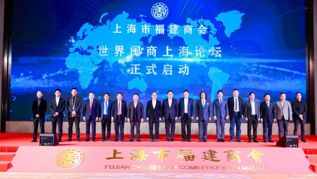 松江區(qū)委書記程向民,上海市福建商會會長林騰蛟,上海市福建商會監(jiān)事長于曉青,商會名譽會長占萬龍代表上海市福建商會與世界各地友好閩籍僑商社團共同發(fā)起世界閩商上海論壇計劃。