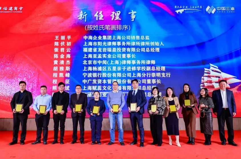 上海市福建商會會長、第十二、十三屆全國人大代表、陽光控股有限公司創(chuàng)始人、董事局主席林騰蛟,上海市福建商會輪值會長、第十一屆、十二屆全國政協(xié)委員、郭氏投資集團有限公司董事長郭加迪,上海市福建商會監(jiān)事長、興業(yè)銀行上海分行原黨委書記、行長于曉青,名譽會長、港龍(中國)地產(chǎn)集團有限公司董事局主席呂明,名譽會長、上海市莆田商會會長、上海三銀投資管理有限公司董事長黃銀賢,名譽會長、上海長江醫(yī)療產(chǎn)業(yè)投資集團董事局主席占萬龍,名譽會長、上海翔達實業(yè)(集團)有限公司董事長王金象等商會領導出席活動。